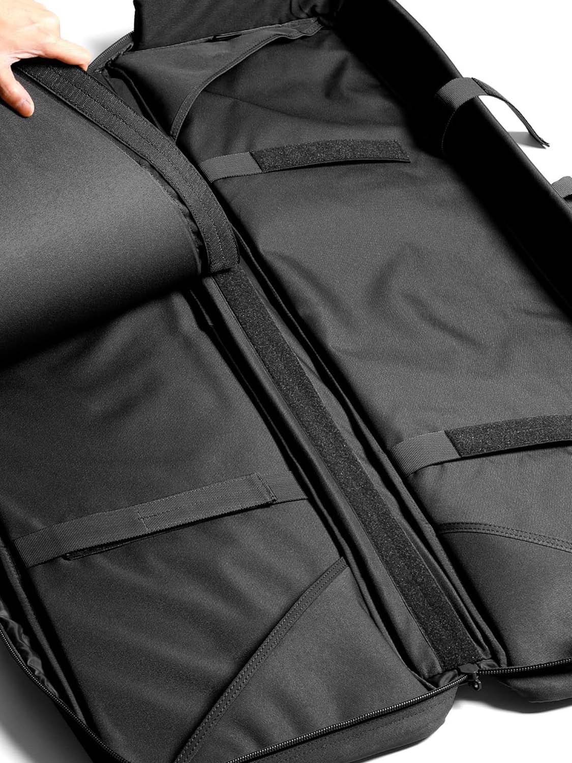 Padded shoulder straps distribute weight evenly for comfort during long hikes. Interior is fully lined and cushioned to protect firearms from scratches and impacts.